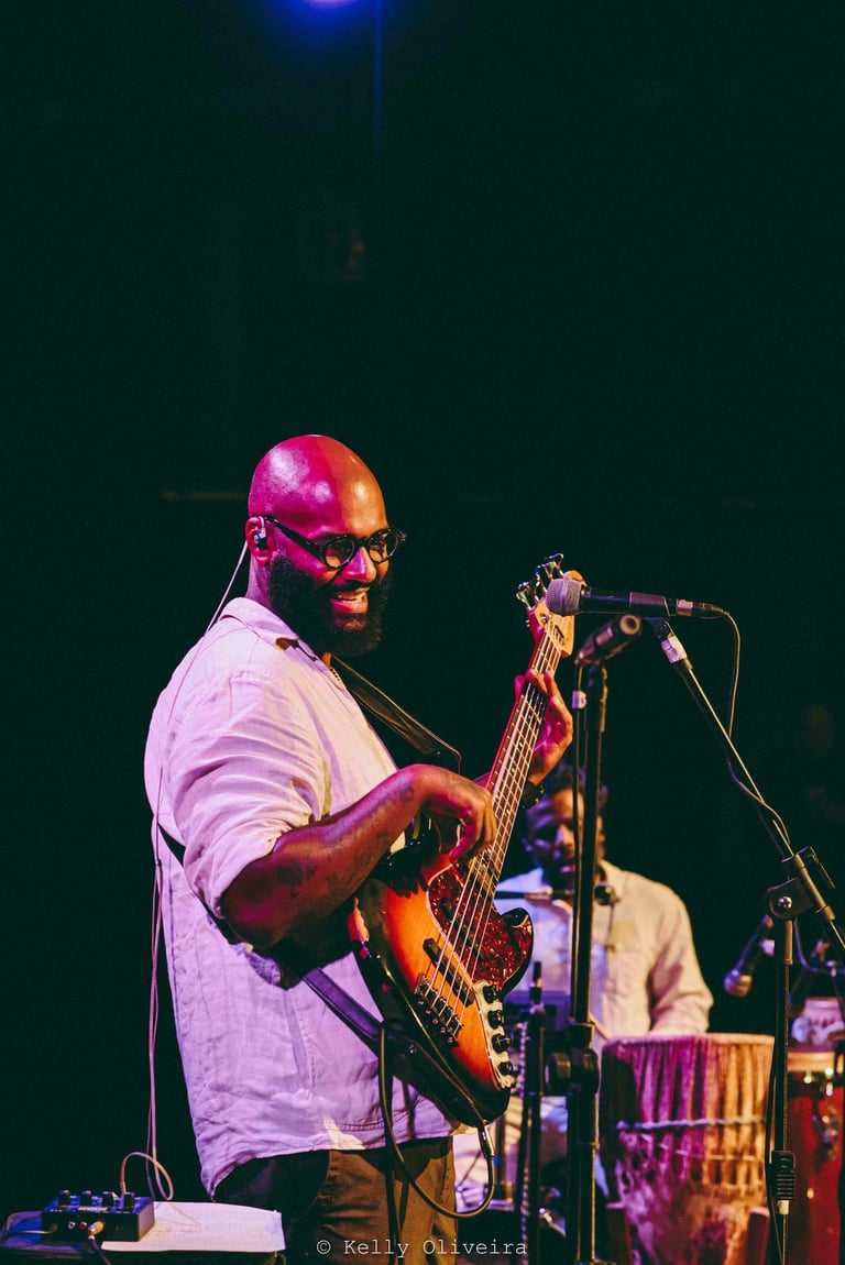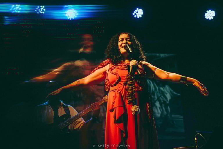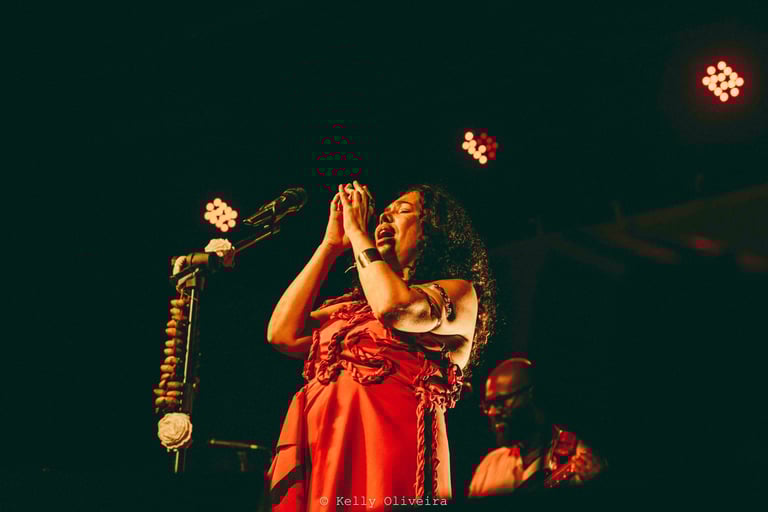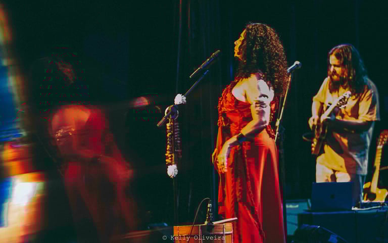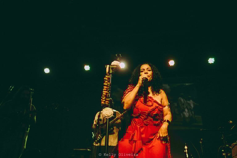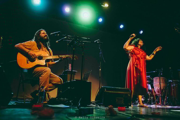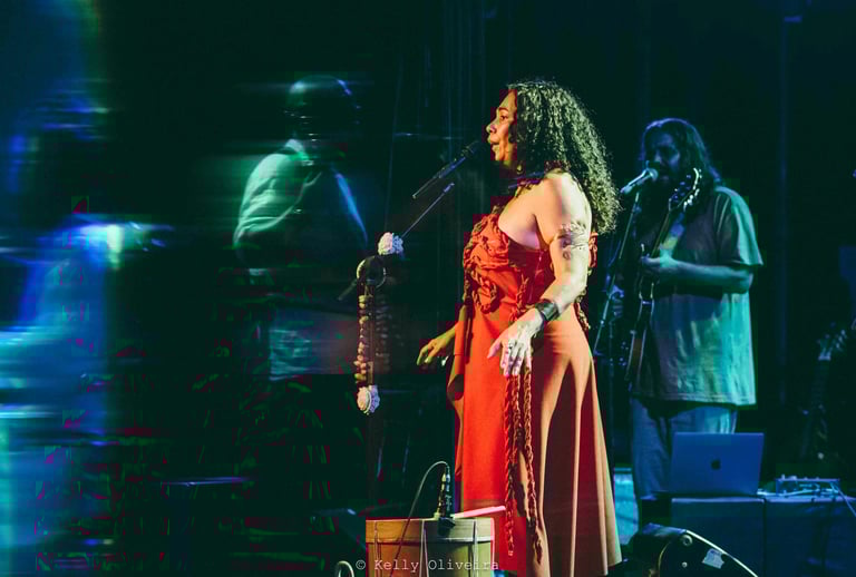 O que tornou tudo ainda mais poderoso foi a forma como Raquel trouxe a sua voz, com uma potência que reverberou fundo na alma de quem escutava. Sua presença, sua expressão, eram um convite para refletirmos sobre nossas próprias jornadas. Ao seu lado, a genialidade do Diogo Spadaro — que com maestria comandou os arranjos e a produção musical — elevou cada canção, tornando-as momentos de intensa conexão. E os músicos JazzBass e Sabá, com suas almas pulsando em cada nota, tocando com o coração aberto, reforçaram a mensagem de que a música é um hino à vida, à ancestralidade e ao amor.